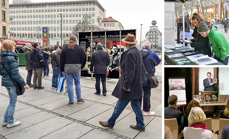 In Germany, CCHR chapters held events in Berlin, Frankfurt, Hamburg, Stuttgart and Munich, with vigils for Holocaust victims and displays entitled “The Men Behind Hitler” and “Eugenics and the Holocaust” placed on a busy street. All events exposed the true source of deadly policies and actions behind the Holocaust, so that such crimes will never happen again.