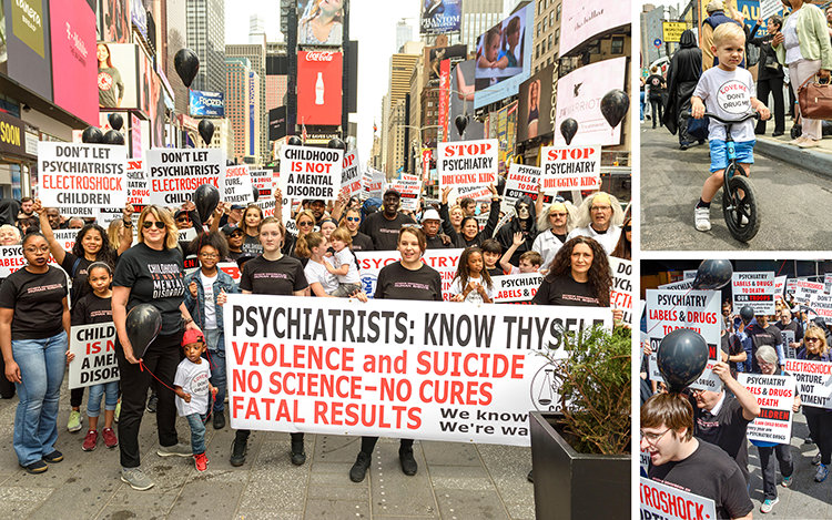 A CCHR march and demonstration protested psychiatry’s use of electroconvulsive therapy (ECT)—also called electroshock therapy—especially on toddlers and children, at the annual conference of the American Psychiatric Association (APA) in New York City. Many believe that ECT—up to 460 volts of electricity through the brain—no longer exists. But the more than 25 lectures and papers presented on ECT at the APA convention put such beliefs to rest. US manufacturers of electroshock devices were two exhibitors at the APA conference.